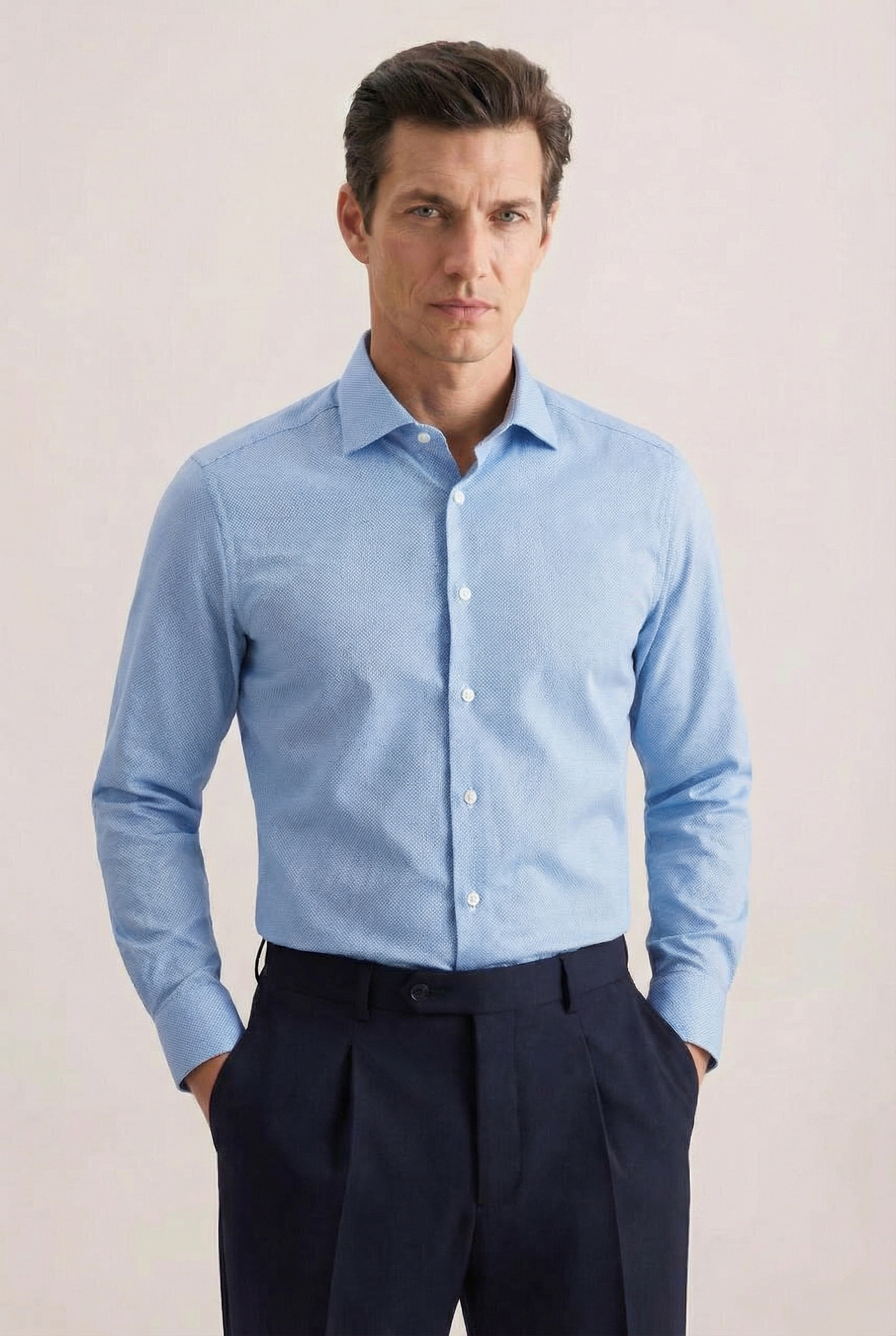 • Прямой силуэт, Классический воротник, Классический (на пуговице), Однотонный, Голубой