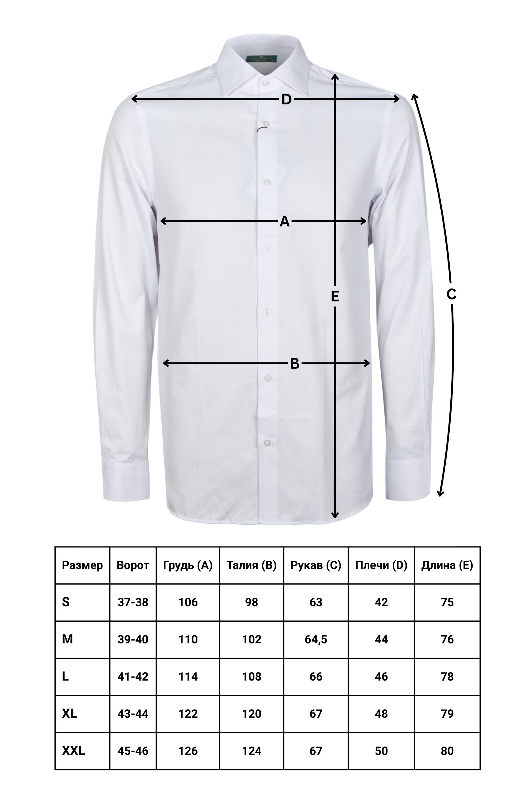 • Полуприлегающий силуэт, Классический воротник, Классический (на пуговице), Однотонный, Белый