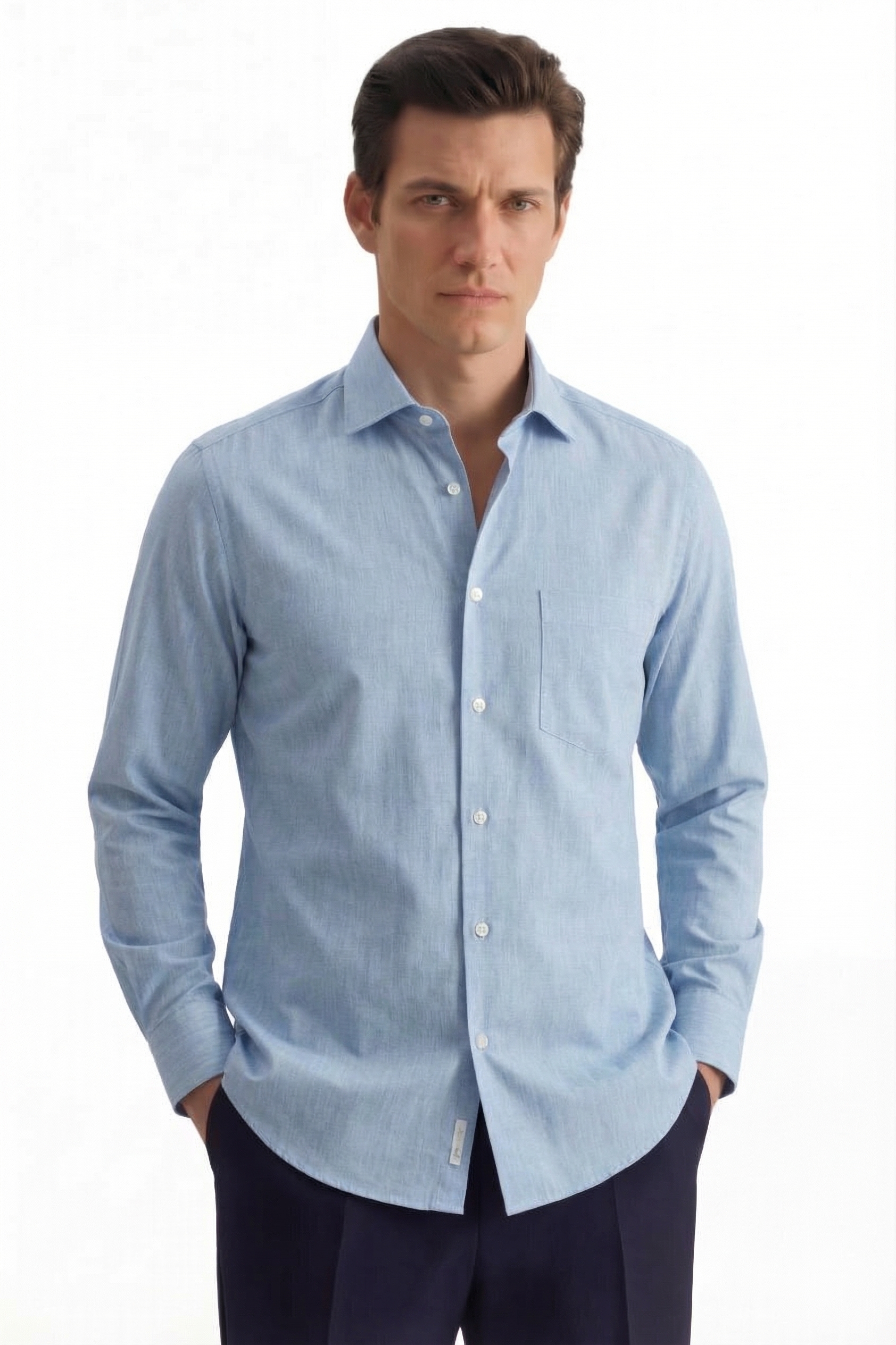• Прямой силуэт, Классический воротник, Классический (на пуговице), Однотонный, Голубой