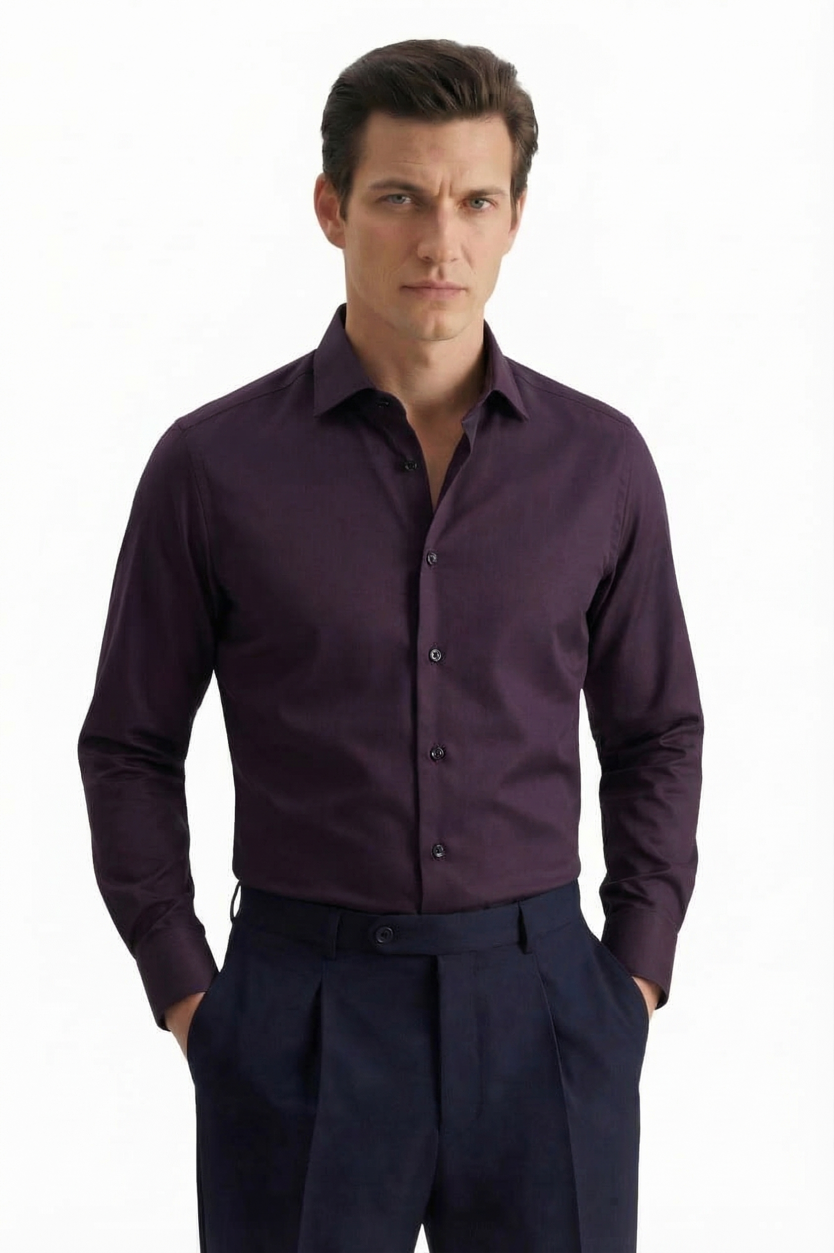 • Shaped Fit, Классический воротник, Однотонный, Сливовый