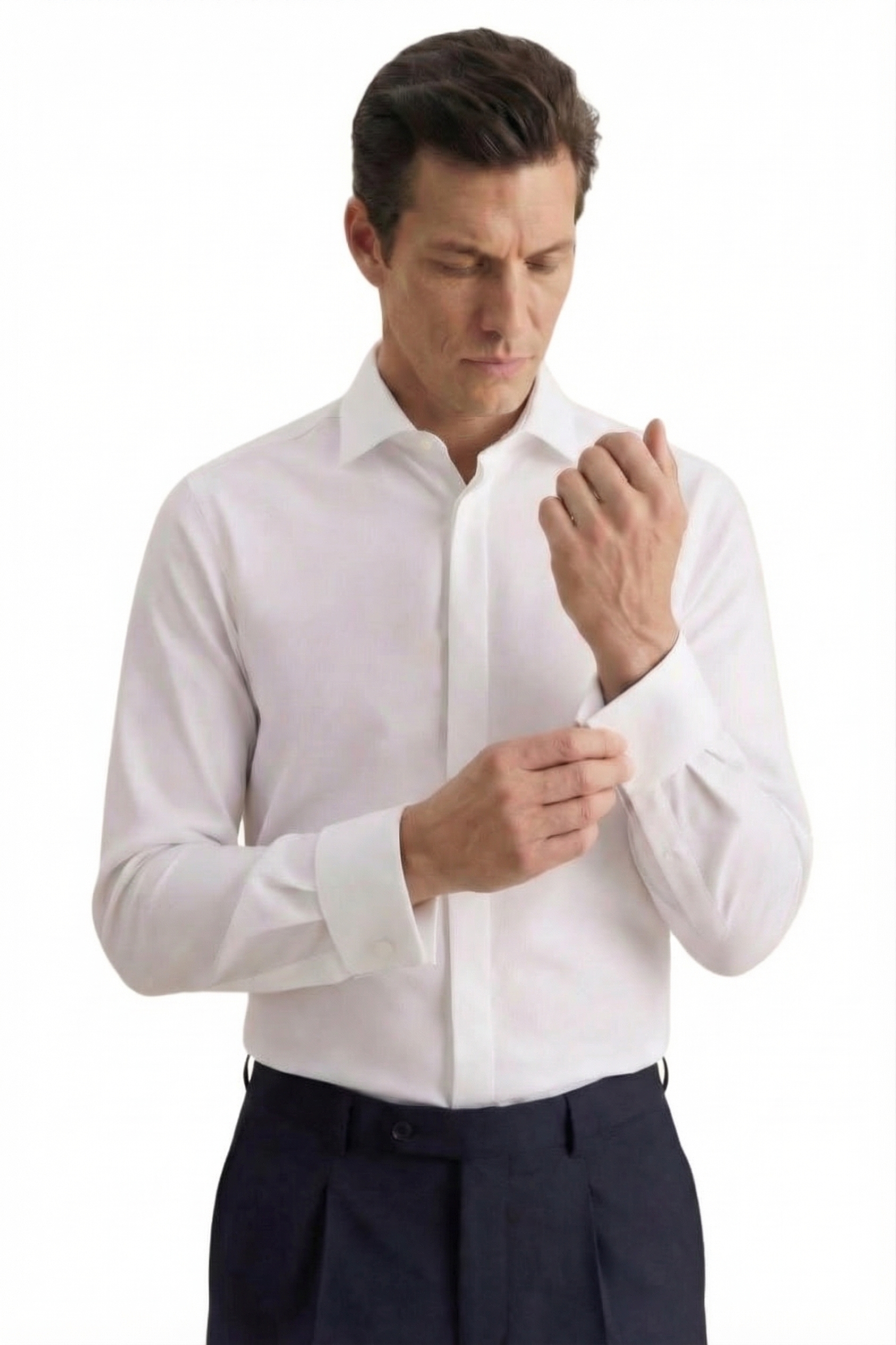 • Custom Fit, Классический воротник, Классический (на пуговице), Однотонный, Белый