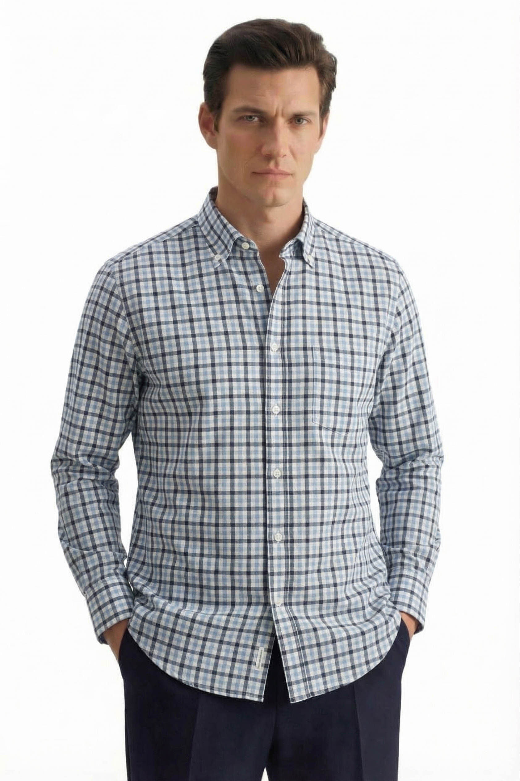 • Custom Fit, Button & dawn, Классический (на пуговице), Клетка, Синий