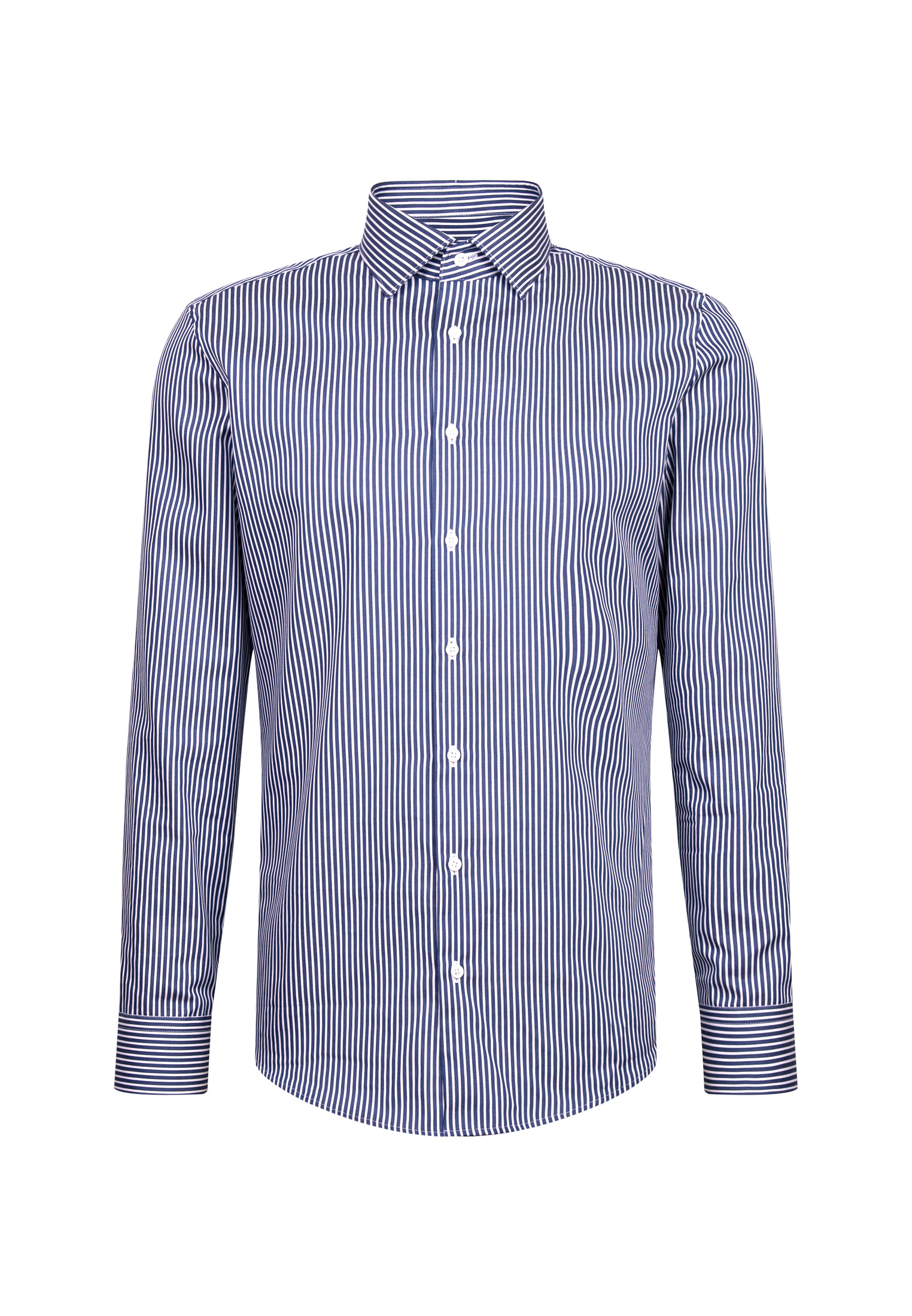 • Shaped Fit, Классический воротник, Классический (на пуговице), Полоска, Синий