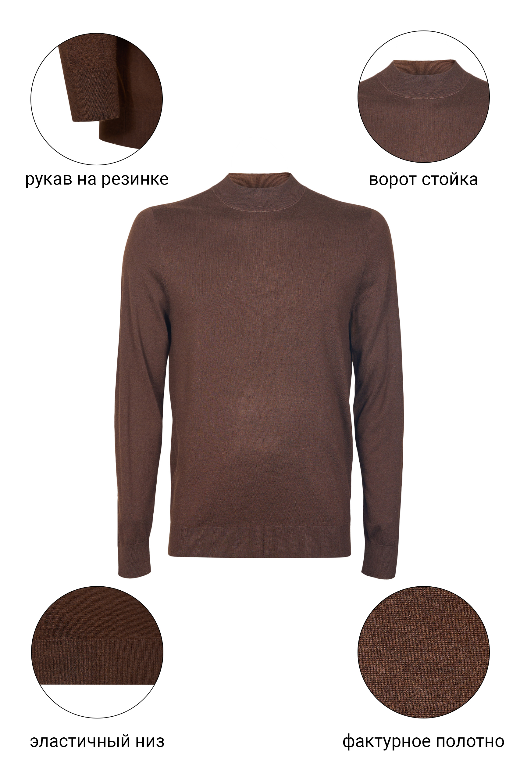 • Приталенный силуэт, Круглый, Однотонный, Коричневый