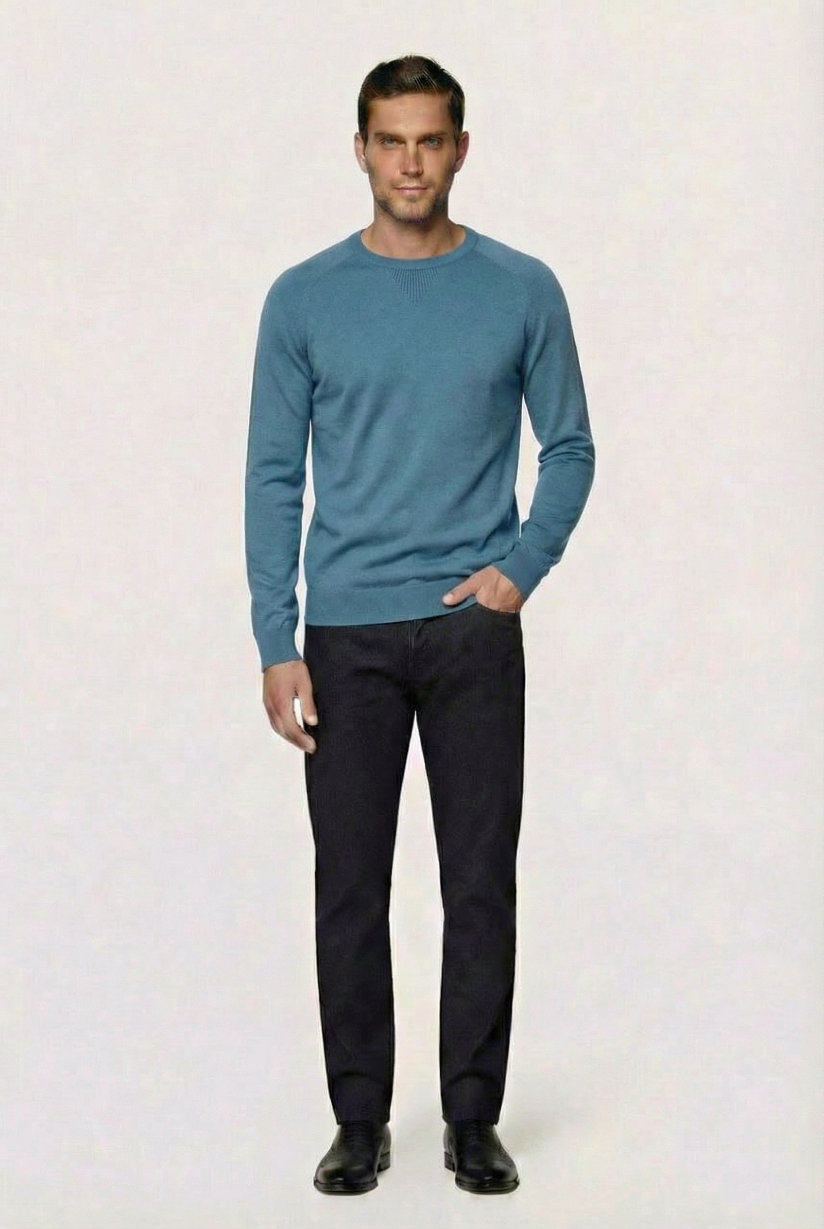 • Приталенный силуэт, Круглый, Однотонный, Голубой