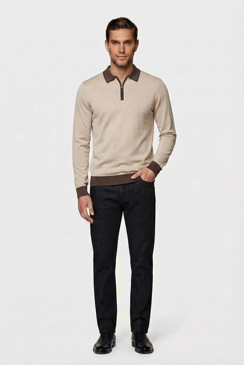 • Джемпер-поло CAIOMARIO полуприлегающего силуэта из высококачественной шерсти мериноса «Merino wool»- это тонкая, мягкая и очень качественная шерсть. Она ценится за свои уникальные свойства, такие как превосходная терморегуляция (сохраняет тепло в холод и прохладу в жару), гигроскопичность (хорошо впитывает влагу, но быстро сохнет) и приятная на ощупь мягкость, благодаря которой она не «колется». Воротник отложной. Застежка на короткую молнию. Низ изделия и рукавов на резинке. Прекрасно сочетается с джинсами и брюками . Стильная и элегантная вещь отлично подойдет для повседневной носки. Выбирайте качество, выбирайте стиль, выбирайте CAIOMARIO!