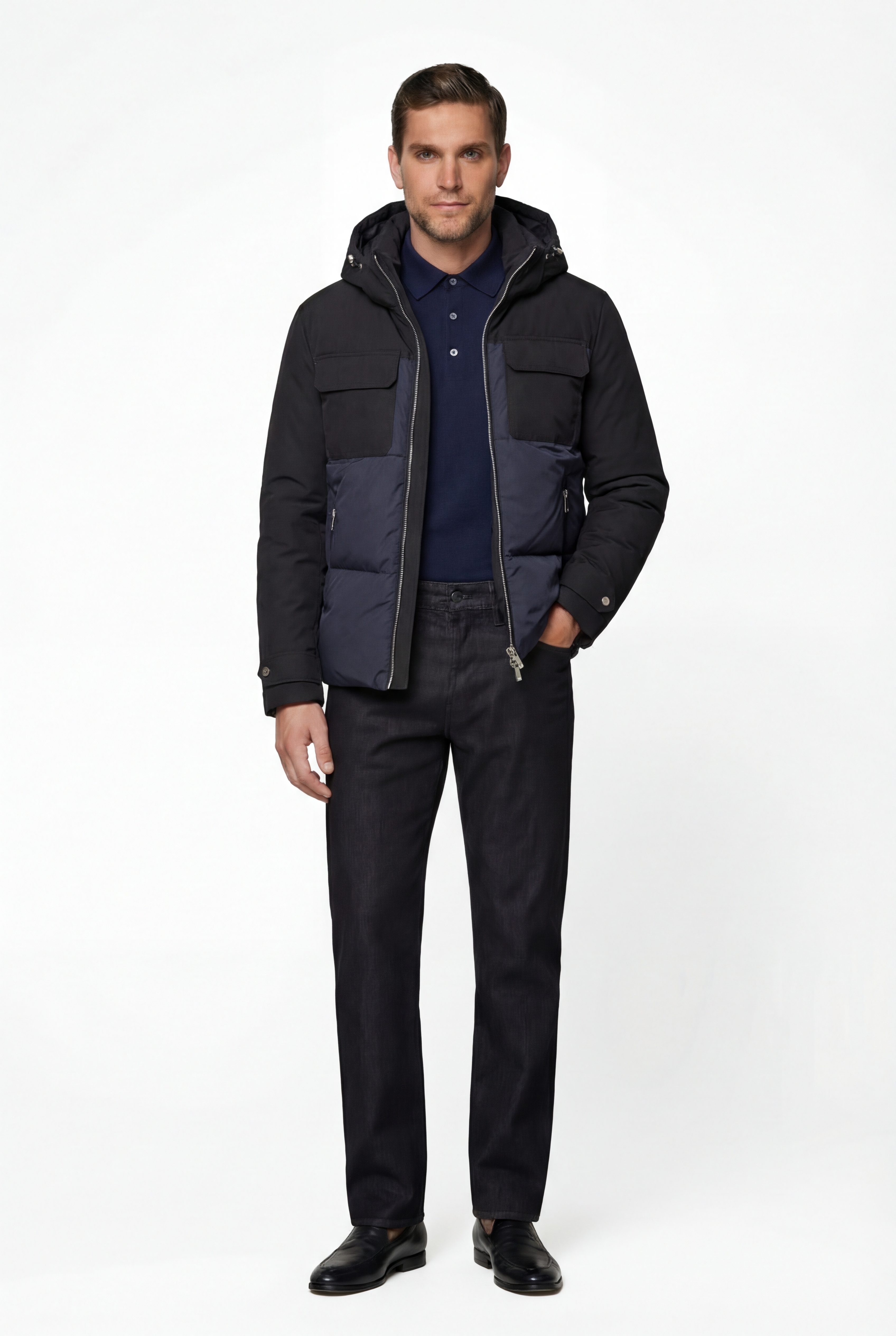 • Стильный мужской пуховик AUTEBEEL — идеальный выбор для холодного сезона. Модель изготовлена из высококачественной ткани с высокой степенью защиты от ветра и влаги, отличается износостойкостью и легкостью в уходе. Наполнитель состоит из 90% натурального пуха и 10% пера, что гарантирует высокий уровень теплоизоляции и позволяет вам оставаться в тепле даже в самые холодные зимние дни. Натуральный пух делает пуховик легким, но при этом невероятно теплым, создавая защиту от ветра и холода. В изделии использована технология самонагрева.Застежка на молнию, по низу куртки утягивающая кулиса. Для дополнительного комфорта в пуховике предусмотрен отстегивающийся капюшон. Это позволяет вам адаптировать модель в зависимости от погодных условий. При сильном ветре или снегопаде капюшон защитит голову от непогоды, а в дни с более мягкой погодой его можно легко снять, оставив более сдержанный образ. Кроме того, капюшон оснащен утягивающей кулисой, что позволяет регулировать его плотность, обеспечивая максимальную защиту. Для удобства хранения личных вещей предусмотрены четыре внутренних кармана. Это практичное решение позволяет разместить телефон, ключи, документы или другие мелкие предметы, не прибегая к использованию дополнительных сумок. Также присутствуют боковые и нагрудные карманы на молнии с внешней стороны, что добавляет дополнительное пространство для ваших аксессуаров. Трикотажные манжеты внутри рукава защищают от проникновения ветра и снега, обеспечивая комфорт даже в ветреную погоду. Манжеты также добавляют дополнительное тепло, не давая холодному воздуху проникать внутрь через рукава. Пуховик AUTEBEEL отличается лаконичным и сдержанным дизайном, универсальная модель, которая прекрасно впишется в любой гардероб. Подходит как для ежедневных деловых поездок, так и для прогулок по городу или активного отдыха на природе.